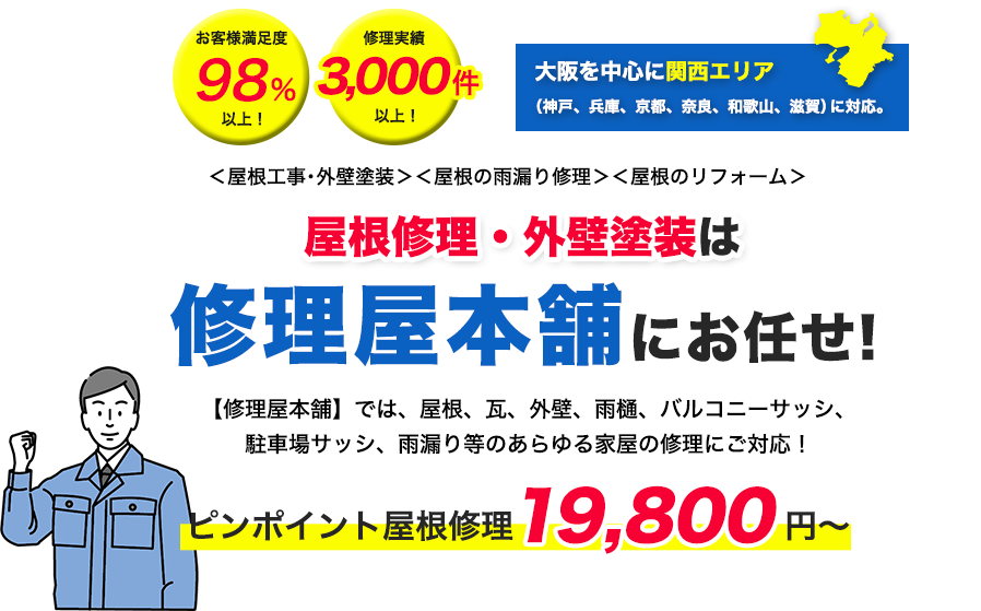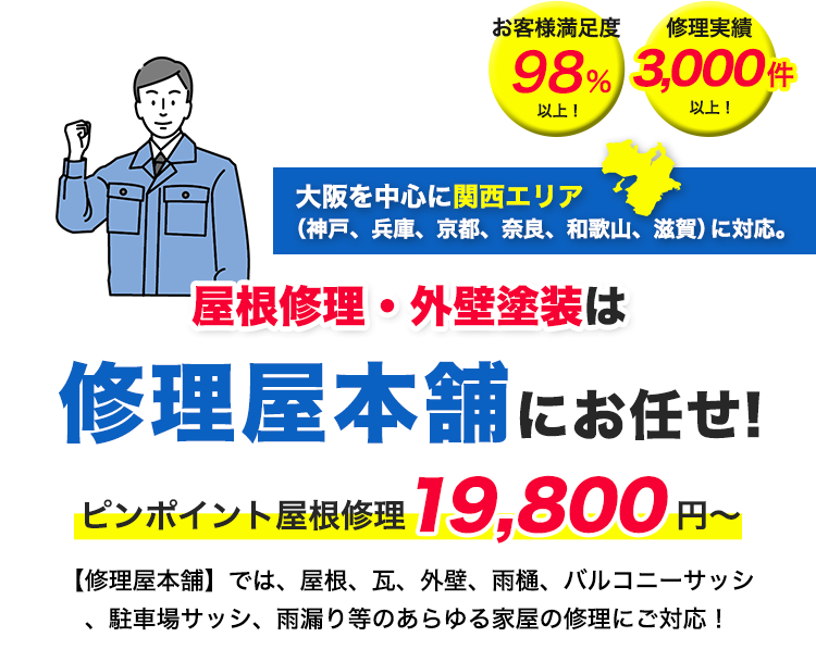 施工実績3,000件以上!あらゆる屋根トラブルも、職人が丁寧な修理サービスを提供いたします!