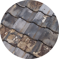 スレート屋根、金属屋根・瓦屋根などの屋根材の交換修理、ひび割れ、棟板金の取り替え、漆喰補修などを行います。